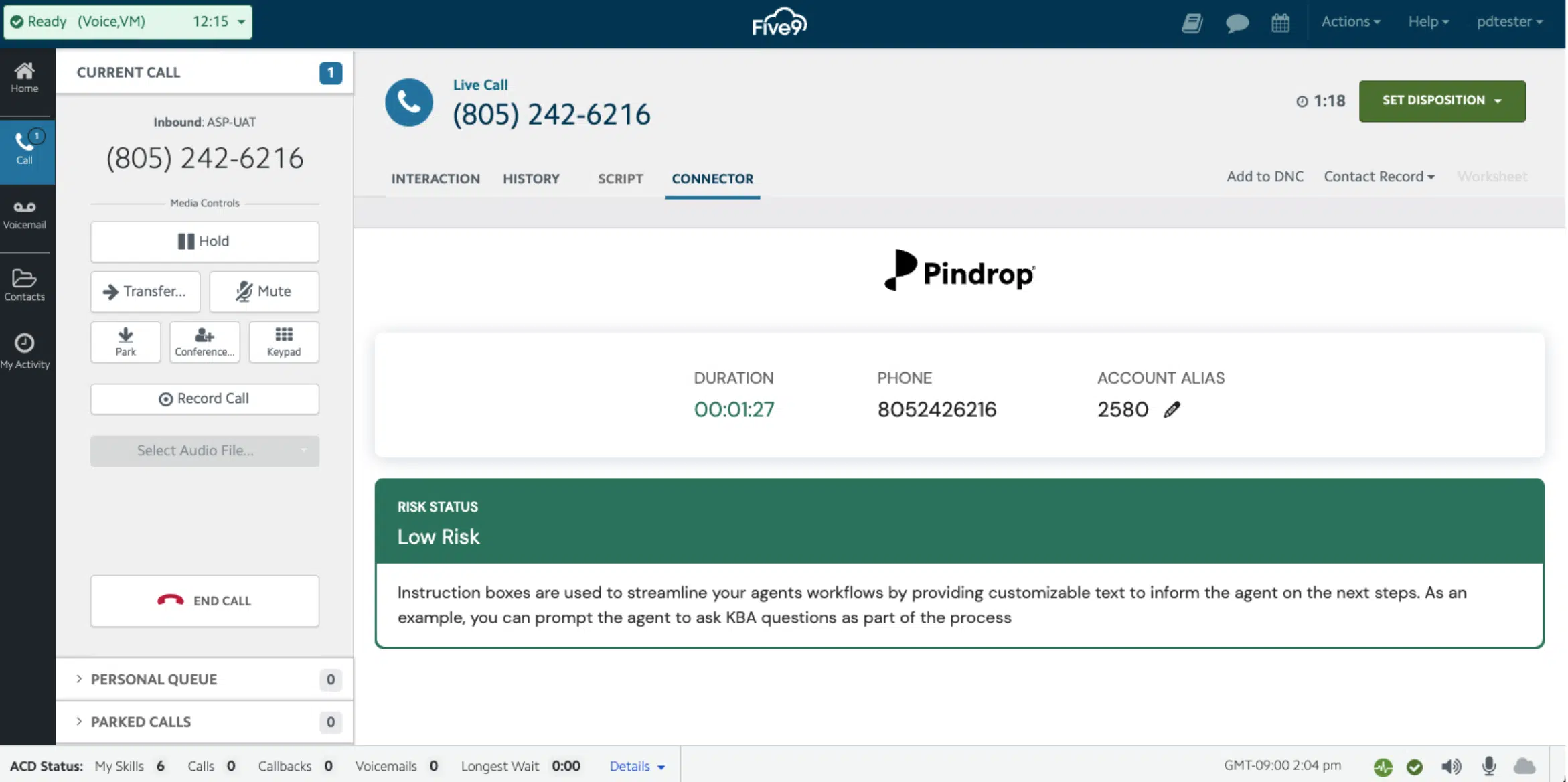 A first of its kind for Pindrop, we constructed a pre-built agent user interface, delivered through the Five9 agent desktop as a connector, as a means of easily implementing Pindrop intelligence and policy-driven instructions to Five9 agents in a clear, intuitive way.