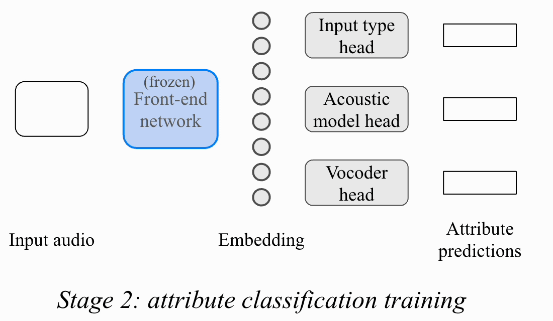 As covered in our previous blog on robustness against zero-day attacks, voice cloning systems are typically built from common generative AI building blocks. TTS and VC systems commonly have a conversion model that is responsible for producing output acoustic features and a vocoder that transforms those acoustic features to output waveforms. As many novel deepfake systems tend to reuse existing building blocks, we adopt a generalizable approach of predicting the conversion model and vocoder. Additionally, we propose identifying the input type (text or speech).