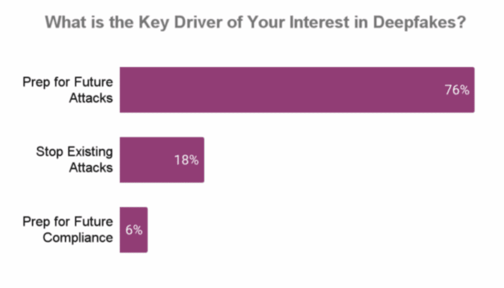 The interest in deepfakes is often driven from the Chief Risk Officer or the CISO. Call center technology teams are often being asked by risk teams to prepare briefings and do initial assessments of readiness of their authentication and fraud systems. While deepfake protection was not part of the 2023 operating plan, the interest from leadership is forcing the call center product teams to respond quickly.