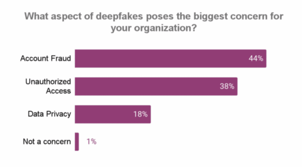 Deepfakes need to be fought on multiple fronts. Account fraud and unauthorized access were the top 2 risks in customers’ minds.