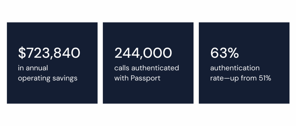 Powered by Pindrop® Passport, a multifactor authentication solution, the team eliminated 58 seconds of authentication time per call, driving $723,840 in annual operating savings—exceeding the initial 2025 forecast by $162,000.