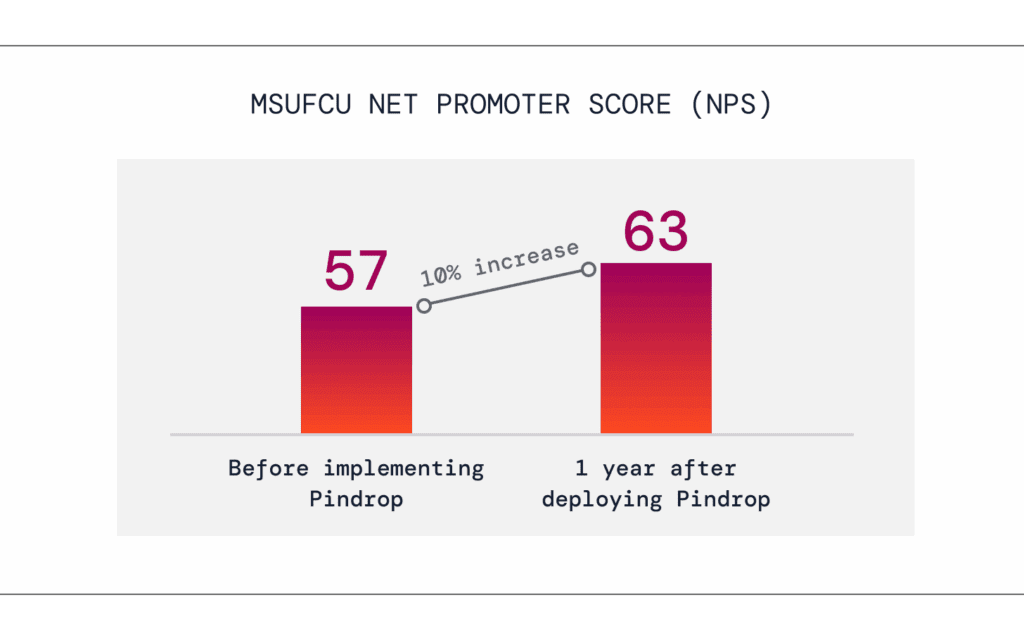 Before implementing Pindrop solutions, MSUFCU already maintained an impressive Net Promoter Score (NPS) of 57, reflecting strong member satisfaction and loyalty.